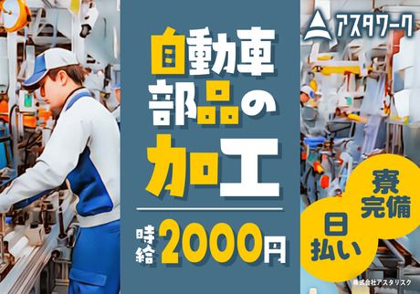 仕事内容 軽作業で高収入を目指したい!モクモク作業でしっかり稼ぎたい!そんなあなたにオススメ! ■手のひらサイズの金属部品を専用の 加工機にセットし、スタートボタンを 押すと自動加工が開始します。 ■加工後の部品を取出し、キズや変形がないか を目視で確認し、次の加工機にセットしていきます。 機械を複数台担当していただきますので、 適度に体を動かします。 ずっと同じ姿勢でいるのが苦手な方にもおすすめです。 ほとんどの工程が機械による自動化!力仕事はほぼなし! 20代30代の男性スタッフが中心に活躍しており、 活気のある職場です。 大人気のお仕事になりますので、 採用者が決まり次第、募集を終了させて いただく場合がありますので、お早めのご応募を お願いいたします。 \電話応募受付中です/ 0120-99-7767 (通話無料)[電話受付時間:9時~18時] 経験豊富な女性スタッフが、あなたの不安や 疑問に丁寧にお答えします。 18時~翌8:59までは自動応答にて受付中! 翌営業日に順次ご連絡させていただきます。 0532-69-5269 よりご連絡致します。 安城市の方はもちろん、岡崎市や西尾市、 刈谷市、知立市などからも通われている方もいます。 もちろん県外の方も岐阜県や三重県、静岡県からの 入寮者さんも多数活躍中です! 生活家電付きの寮を完備しておりますので 一人暮らしデビューにも! 食堂完備で毎日温かいご飯が食べられます。栄養バランスも整ってうれしい! 食堂がありますのでご飯の心配はありません! 売店もありますので、 今日はカップラーメンがいいなど 自分の気分に合わせてご飯を選ぶこともできます。 もちろんお弁当の持参もOKです。 自販機も各所に設置せれていますので 水分補給もしっかりできるので安心です! 就業場所から車で5分のところにコンビニや ドラックストアがありますので、行き帰り によれて便利です。 車通勤も歓迎!無料駐車場完備! 弊社が借りている無料駐車場完備! マイカー通勤歓迎! 免許はあるけど、通勤車両がないという方も アスタリスクなら大丈夫です! 自動車・原付・自転車のリース制度がありますので お気軽にご相談下さい。 アスタリスクならすぐに新生活がスタートできます。 全てのお部屋に生活家電付き! ・冷蔵庫、エアコン、洗濯機、電子レンジ テレビ、カーテン等 生活に必要な家電は一式完備してます! 当日からスグに新生活がスタートできます! ※敷金礼金や仲介手数料などの 初期費用も不要です! 面倒な手続きも必要ありません◎ 布団も有料ですがご用意できます! 新品 6千円 中古 5千円 アスタリスクはあなたの「働く」を全力でサポートします!私たちと一緒に、新しい一歩を踏み出しませんか? 新しい職場でのスタートは、誰でも不安ですよね。 だからこそ、私たちはあなたのそばに寄り添い、 全力でサポートします。 入社初日は、担当者が同行するので心強いはずです! 定期的な訪問はもちろん、困った事があればすぐに 駆け付けます。仕事のことからプライベートなこと まで、どんな小さなことでも遠慮なくご相談ください。 季節ごとのサポートもお任せください! 夏は暑さ対策塩飴やスポーツドリンク 冬は、心も体も温まるホッカイロや 温かいコーヒーなどを持って会いに行くことも。 体調が優れない時などは栄養ドリンクを差し入れする こともあります! 少しでもあなたの力になれることがあれば、 全力でサポートします!
