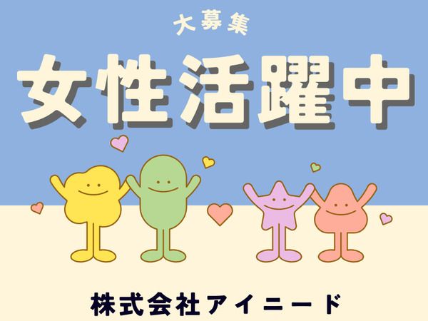 仕事内容 【お仕事内容】 チューブを扱う企業での軽作業☆ 図面を見ながらチューブの寸法検査やカット作業☆ 重量物も無くほとんど嬉しい座り作業◎ 空調完備で働きやすく環境GOOD!!☆ 未経験の方でもしっかり教育があるので安心してお仕事スタートできますよ☆ :+:・-・:+:・-・:+:・-・:+:・-・:+:・-・:+: 【職場見学OK】 事前に工場見学できますので、職場の雰囲気やお仕事内容確認してからお仕事スタートできますよ! お仕事も丁寧に教えていきますので、未経験者の方も安心してください! 見学の際には弊社スタッフが同行し、 和やかな雰囲気で、ざっくばらんに質問もできますよ。 :+:・-・:+:・-・:+:・-・:+:・-・:+:・-・:+: 【日払い・週払いシステム】 アイニードは勤怠実績に応じ、給与の一部を 日払い・週払いでもお支払い可能♪ 困った時でも最短2日で受け取ることが出来ます♪ 残りの分は給与日にまとめてお支払いします◎ 応募の前に詳しく聞きたいという方も遠慮なく問い合わせください! :+:・-・:+:・-・:+:・-・:+:・-・:+:・-・:+: 【応募&お問い合わせ】 細かいことでもお気軽にお問い合わせください♪ ご応募は応募フォームかお電話、ショートメッセージでもOKです。 気になったらとりあえずご応募いただいて、それからご検討してもらってもOK 女性スタッフが対応☆寄り添ってお仕事探しをサポートいたします! :+:・-・:+:・-・:+:・-・:+:・-・:+:・-・:+:
