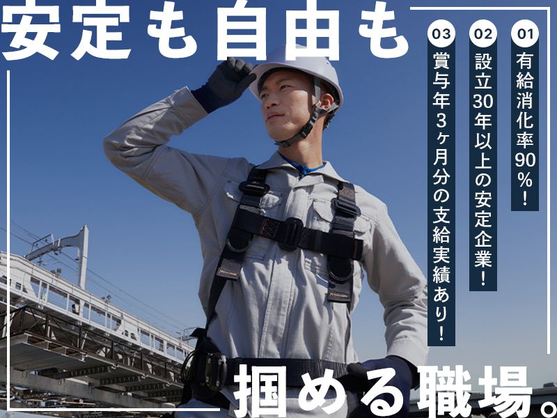 雇用形態 正社員 試用期間 試用期間:なし 契約期間 期間の定めなし 歓迎キャリア 【 下記経験も活かせる環境! 】 〇現場作業系 〇現場作業員や土木作業員の経験 〇建設業や土木・建設業界での経験 〇現場作業や大工・工事に関する経験 〇建築業での作業員や建設作業員経験 〇解体工事や型枠工事の経験 〇建設現場作業員の経験 〇型枠大工や足場とび(鳶工事)の経験 〇鳶工(とび工)やとび職の経験 〇生活に関する電気工事や管工事の経験 〇電気工事士や配管工・造園工の経験 〇各種工事現場での清掃業務の経験 〇荷揚げに伴う軽作業などの経験 〇夜勤の解体作業スタッフ経験 〇建築土木業界での経験 〇塗装工や足場工などの専門職経験 〇リフォーム内装工やデザイン工事の経験 〇現場系の解体業者としての経験 〇とび職人としての豊富な経験 〇オフィスビルでの清掃スタッフ経験 〇建築大工としての専門的な経験 〇施工をメインとした業務経験 〇建設土木業界での業務経験 〇各種工事現場系 〇設備工事や設備メンテナンス系の仕事 〇ビル工事やビルメンテナンス業務 〇水道工事や道路工事に関する仕事 〇土木工事や河川工事現場での経験 〇内装工やリフォーム工事の経験 〇クロス職人や左官などの職人仕事 〇とび工事などの専門性の高い仕事 〇規模感を問わない造園工事や橋梁工事 〇下水道工事や塗装工事、トンネル工事 〇舗装工事などを担当する外構工事 〇板金の加工などに関する経験 〇下記に当てはまる専門性の高い工事 ・シート防水工事・ウレタン防水工事 ・FRP防水工事・アスファルト防水工事 ※防水施工技能士の資格も役立ちます! 〇重機オペレーター系 〇機械オペレーターの経験 〇ユンボやパワーショベルの操縦経験 〇ダンプ・ロードローラーの運転経験 〇ホイールローダーの操作経験 〇バックホウを使用した業務経験 〇フォークリフトオペレーターの経験 〇ブルドーザーなどの重機操作経験 〇ほかにも… 〇板金加工や修理に関する業務 〇外構や防水業務の経験 〇造園や園芸・草刈り・庭師業務 〇伐採や草刈り作業 〇造園業での造園庭師業務 〇花や植物を扱う業務 〇植木などの職人業務 〇豊富な施工経験がある 〇ハローワークでお探しの方も 当サイトからご応募可能です