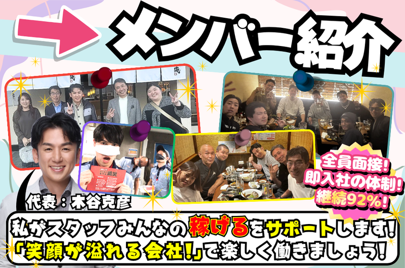 【✨今年から1,000円アップ✨】ここなら間違いなし!未経験からスタートOK✨⇨【日当保証+車代0円+燃料0円+プレゼントあり】⭐️メンバー愛が大きい会社です!!!by木谷社長⭐️
