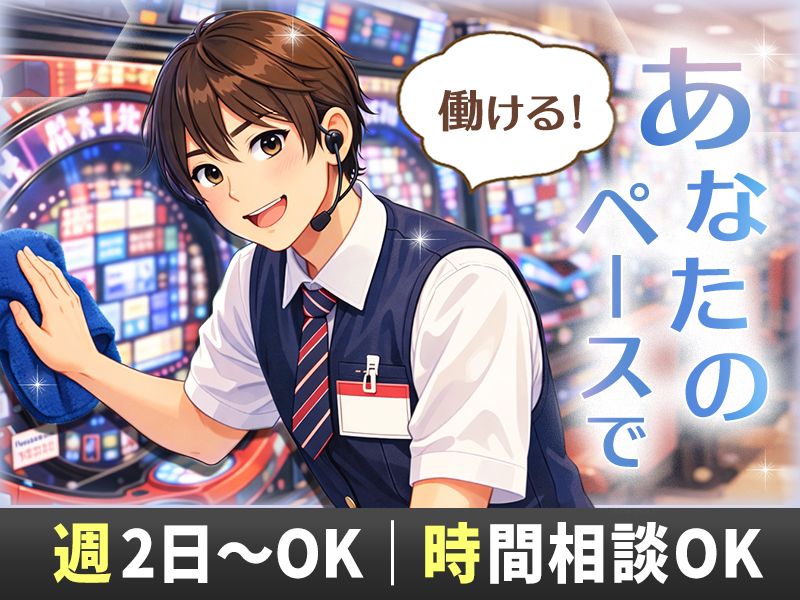 メッセージ 【パチンコの知識、本当にいりません!】 現在活躍中のスタッフも、 お店に入ったことすらなかった人がほとんど。 まずは笑顔で「いらっしゃいませ」 ができれば合格です! 【スピーディー対応】 応募後の対応がスピーディーなので、 モヤモヤ待つ必要なし。 面接日もあなたの都合を最優先します! 【居心地バツグンの職場!】 20代~50代まで幅広い層が活躍中。 スタッフ同士の仲が良く、 分からないことも聞きやすい職場です◎ 【パチンコ知識ゼロでOK】未経験者多数活躍!「パチンコ店に入ったことがない」そんな方も大歓迎★ パチンコ店運営