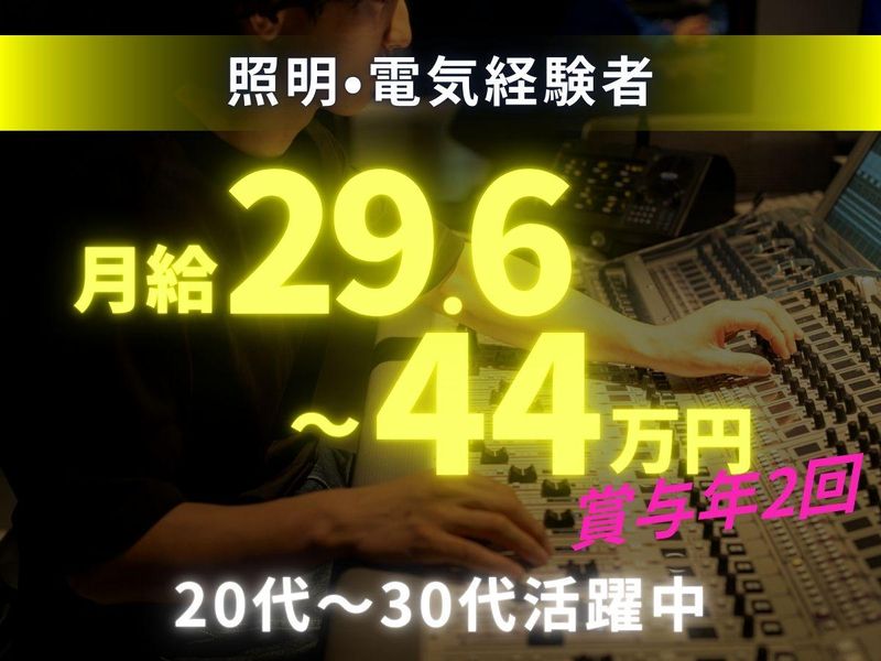 職場環境 イベント照明、電飾、イルミなど 空間演出技術を主軸とした事業を 行っています。 照明・電飾などの プランニングから施工、本番オペ、撤去まで 一貫して提供する会社です。 デザイン性の高い現場が多く 空間演出と電気技術の 両方を学べる環境です。 喫煙所:喫煙所あり(屋外) 敷地屋外での喫煙可。社内は禁煙