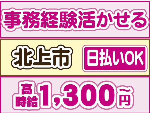 【北上駅より徒歩10分】 【履歴書不要】日払いOK 日勤・事務経験活かせる・土日祝休み