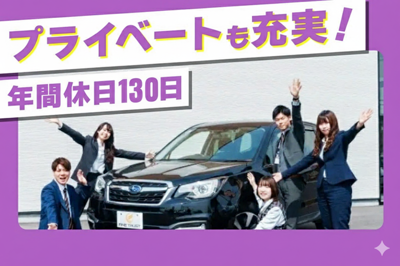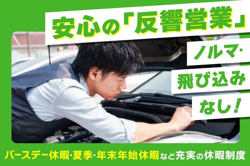 仕事内容 ━━━━━━━━━━━━━━━━━━━ ⭐未経験でも⽉給30万円スタート! ⭐ 20〜30代の若手中心に活躍中 ⭐ ノルマ・押し売りは一切なし! ━━━━━━━━━━━━━━━━━━━ \2025年11月 岡崎市に新店舗OPEN!/ ⭐ 全員が同じスタートライン! 未経験でものびのび働けます! ━━━━━━━━━━━━━━━━━━━ お任せするお仕事 ━━━━━━━━━━━━━━━━━━━ ⭐ 自動車の買取・販売営業 ⭐ オープニングスタッフとして *来店されたお客様のクルマを査定 *出張査定のご依頼があった お客様宅を訪問し、査定を実施 *上司と相談しながら金額を提示 → ご契約へ ✅100%反響営業! ✅テレアポ&飛び込み営業無し! ━━━━━━━━━━━━━━━━━━━ 未経験でも働きやすい職場です! ━━━━━━━━━━━━━━━━━━━ ⭐ クルマの情報をアプリに入力するだけ 査定額を自動算出! ⭐専門知識&経験がなくても安心! ⭐飛び込み・テレアポ・ノルマなし 来店やお問い合わせいただいた ニーズのあるお客様のみだから 提案もしやすい! 「営業は初めて」「クルマに詳しくない」 そんな方も、一からキャリアを積めます! ━━━━━━━━━━━━━━━━━━━ 研修制度も充実! ━━━━━━━━━━━━━━━━━━━ ⭐入社時に基礎から学べる研修あり ⭐ 月1回の合同研修で 知識&提案力を定期フォロー ⭐ 同期と一緒に学べるから心強い ✨ あなたのやる気応援します! ✨ ✅実力主義の評価制度 ✅実績次第で早期昇進・昇給可能 ✅管理職平均年齢は32歳 ✅入社1年目で店長に 抜擢された実績あり 20〜30代が中心で活気ある職場です。 チームワークを大切に、 みんなで支え合いながら働けます! ━━━━━━━━━━━━━━━━━━━ プライベートも充実できる環境 ━━━━━━━━━━━━━━━━━━━ しっかり休んでこそ良い仕事ができる✨ という考えのもと、 プライベートを大切にしながら 安心してキャリアを築けます。 ✅年間休日130日 ✅月8日以上休み ✅土日休みの取得も可能 ✅バースデー休暇で特別な1日も ✅夏季・年末年始の長期休暇あり ✅有給休暇取得率90%以上