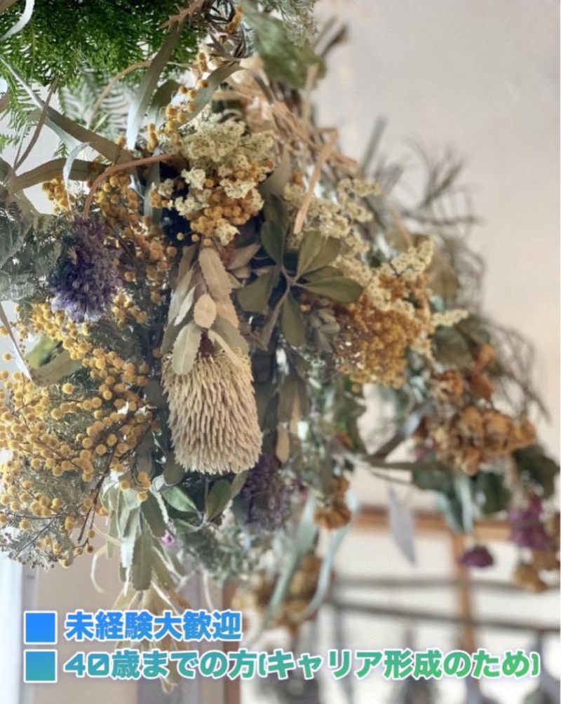 求めている人材 <必須> *要普通自動車免許(AT限定可) *資格・経験・学歴不問 <歓迎> *お花が好きな方 *アレンジメントに興味がある方 *経験者優遇 *U・Iターン歓迎 年齢の条件と理由:あり(例外事由3号のイ・40歳未満(長期勤続によるキャリア形成のため))