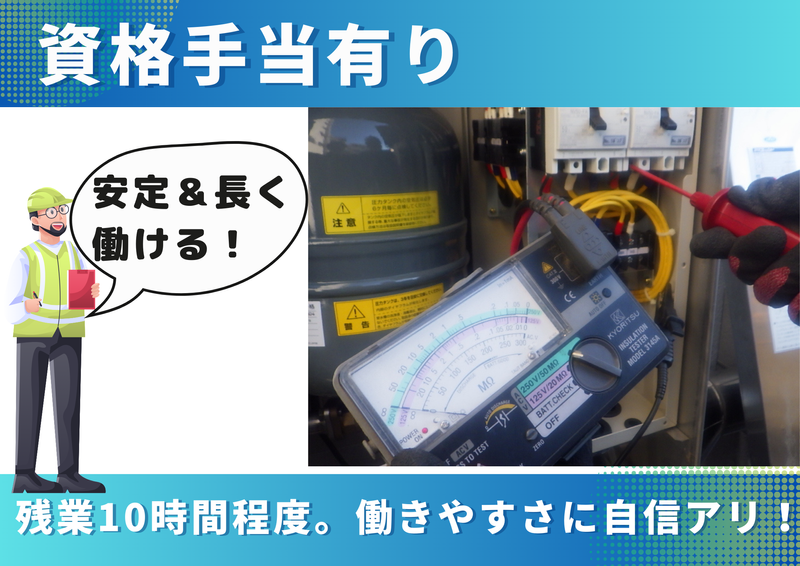 求めている人材 【必須】 ・消防設備士甲種4類の資格保有者 ・消防設備工事(自動火災受信機)の経験 【歓迎】 ・電気工事士(第一種、第二種)資格保有者 【このような方にお勧め!】 ・夜勤や不規則なシフトから、日勤のみの安定した働き方に変えたい方 ・残業を減らし、プライベートの時間を最優先にしたい方 ・今のスキルを軸に、消防設備など新しい分野に挑戦してキャリアの幅を広げたい方 ・会社のサポートを受けながら、より上位の国家資格を取得したい方 関連資格を持っている方も大歓迎♪ 資格手当も充実しています! 学歴不問! 第二新卒歓迎! ブランクOK!