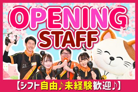 仕事内容 店舗数日本一!まねきねこオープニングスタッフ★ <4月上旬OPEN予定!今だけ大量採用!> ★一緒に始める同期多数で嬉しい♪ ★希望通りシフトで好きに稼げます! <レアな新店!一緒にお店を盛り上げよ♪> ↓メリット沢山★ ◆メリットその1! <おしゃれOK!自分らしく働ける♪> お客さまが不快な思いをされないことが前提ですが、 明るい笑顔、清潔感のある方なら髪色や髪型は自由! お客さまに食事を提供する業務があるため、 ネイルは単色で装飾なし、 ピアスは片耳に1個ずつとさせていただきます。 <近隣店でスグ勤務スタートもOK!> 履歴書不要★ 家でもいつでもできる、 ラクラクスマホ面接実施中! ◆メリットその2! <営業時間が幅広いからシフトはイロイロOK♪> 早朝も昼も夕方も夜間も、都合に合う時間でOK! 週2日~希望相談下さいね! ★色んな働き方ができる! ◎両立したい大学生の例 「週末限定」「授業後に夕方~」 「試験期間休み」OK! ◎家事育児と両立希望パートさん例 「子どもが家に居ない、朝や昼の時間だけ」 「土日祝休みで平日だけ」 「扶養範囲内」OK! ◎稼ぎたいフリーターさん例 「週5日×ロングのレギュラー勤務」 「高時給の深夜帯メイン」OK! ◎Wワーク例 「本業が休みの日ダケ」 「夜勤専属」 「別のバイト前に午前中のみ」OK! ◆メリットその3! <初バイトや経験に自信がなくても安心スタート♪> フロント/受付/レジ/調理補助/ルーム清掃 ちょっとした洗い場など 簡単な作業から1つずつお任せします。 ◎オープン前に丁寧な研修もあり! 他店でも未経験スタートの先輩が多数活躍中! 「できるかな…」と不安な気持ちもよく分かります。 イチから丁寧に教えますし、 分からない事はスグ聞ける環境なのでご安心を! ◎マニュアル動画をスタッフ専用タブレット端末で チェックすることも可能です! ◆メリットその4! <嬉しい特典多数!昇給ありで時給UP!> ・食事補助あり! ・50%OFF従業員割引あり! ・カタログギフトやミニボーナスが貰える! ★昇給制度…目指せまねきねこ!笑 しろねこ→くろねこ→まねきねこ と、ランクUP&時給UPしていきます! ◆メリットその5! <★まねきねこは雰囲気の良さ100点★> 18歳以上・20代・30代・40代・50代の 色んなスタッフが働いていて、 気さくで楽しい!スグ馴染める!と大好評♪ 「店長!今月は稼ぎたいです!」 「店長~来月はテスト期間でシフト減らしたい…」 なども自由に相談しちゃって下さい!笑