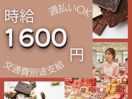 仕事内容 お仕事について チョコレートや焼き菓子の販売 ・接客、販売 ・レジ操作 ・品出し、在庫管理 ・ラッピング ・列整理 【東武百貨店 池袋店】での勤務です♪ 他、新宿高島屋・新宿小田急百貨店・松坂屋上野店でも 同時時募集中!! PRポイント 【1ヶ月の期間限定】 毎年人気のバレンタイン販売スタッフ*°仲間と一緒に一斉スタート♪ ▼未経験OK×週4~OK ▼幅広い年代層の方が活躍中! ▼週払いもご利用ok! #バレンタイン #短期 ☆大手企業での勤務です。 扶養内OK!無理なく私生活と両立できる働き方! 「自分の時間を大切にしながら働きたい」方にぴったりの職場です! 扶養内での勤務を積極的に応援しています。 趣味や習い事、大切な人との時間など、 プライベートを充実させながら、ご自身のペースで無理なくお仕事に取り組める環境です。働く日数や時間の希望もお気軽にご相談ください。 ブランクがある方もご安心ください。あなたの「働きたい」気持ちを応援します! ≪先輩スタッフからのメッセージ≫ 私がこの会社を選んだのは「扶養内で働けること」と「融通が利くこと」が大きな理由でした。 自分のライフスタイルに合わせて働けるので、とても助かっています。 「家庭と仕事を無理なく両立」できていますし、自分の時間も確保できています。 ブランクがあったので最初は不安でしたが、周りの先輩たちが優しくサポートしてくれたので、すぐに慣れることができました。 久しぶりの仕事や、家事・育児との両立に不安がある方も、きっとあなたに合った働き方が見つかります! 最寄駅備考 池袋駅 徒歩1分(山手線/丸の内線/有楽町線/東部東上線/副都心線) その他備考 ≪待遇補足≫ 交通費支給 ≪資格補足≫ 学歴不問、第二新卒歓迎、ブランクOK、フリーター歓迎、40代も応募可、ニート歓迎、 ≪応募について≫ 履歴書不要、来社不要のWEB登録、インディード応募OK ≪職場環境補足≫ 幅広い世代活躍中(20代活躍中、30代活躍中、40代活躍中)