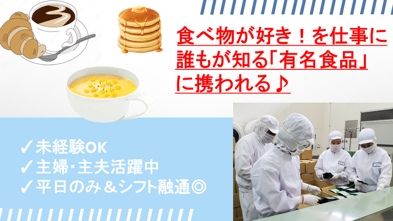 求めている人材 ━━━━━━━━━━━━━━━━━━ ✨ 必須条件はありません ✨ ━━━━━━━━━━━━━━━━━━ 経験も、資格も、特別なスキルも。 何もいりません。 お仕事が久しぶりの方も、 はじめて働く方も、大歓迎です。 まずは本当にシンプルな作業から。 隣には必ず先輩がいます。 「家庭と両立できそう」 「今の生活リズムなら続けられそう」 応募理由は、それで十分です。 無理なく、あなたのペースで 始めましょう。 ━━━━━━━━━━━━━━━━━━ ⭐ こんな方にピッタリ ⭐ ━━━━━━━━━━━━━━━━━━ ✅未経験OK ✅主婦・主夫歓迎 ✅ブランク復帰歓迎 ✅40代・50代活躍中 ✅扶養内勤務OK “ちゃんと働きたい”という 気持ちがあれば大丈夫です。 ━━━━━━━━━━━━━━━━━━ ✨ こんな想い、ありませんか? ✨ ━━━━━━━━━━━━━━━━━━ □ 家庭を優先しながら働きたい □ そろそろ仕事復帰したい □ 安定した職場で長く続けたい □ 単発・派遣から落ち着いた環境に移りたい ひとつでも当てはまれば、 きっと合っています。 ━━━━━━━━━━━━━━━━━━ ■ 活躍している人の共通点 ■ ━━━━━━━━━━━━━━━━━━ ・コツコツ取り組める ・時間やルールを守れる ・周りと協力できる それだけです。 食品づくりを支える、 なくてはならない仕事。 経験よりも、誠実に向き合う 気持ちを大切にしています。 年齢の条件と理由:あり(18歳以上の方(深夜勤務が発生するため))