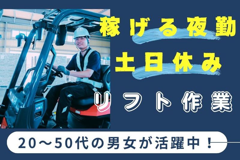 【アピールポイント】 ■大手工場のリフトオペレーター募集■ ✅夜間勤務でしっかり稼げる! ✅土日休み ✅冷暖房完備の休憩所&食堂アリ ✅20~50代の男女活躍中