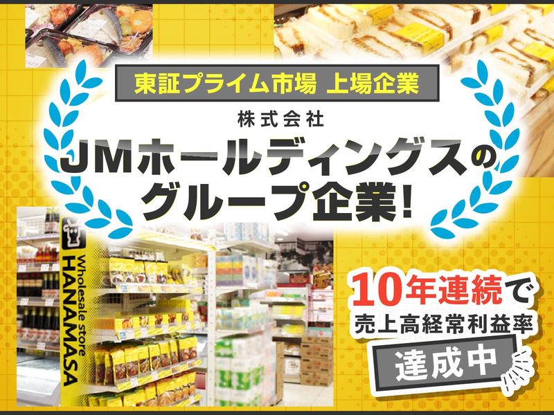 仕事内容 東証プライム市場上場企業で \プライベートの充実と収入を両立!/ ━━━━━━━━━━━━━━━━━━━━ 肉のハナマサ・肉のハナマサ PLUS各店舗で 「野菜・果物の包装・梱包・売場担当」 ━━━━━━━━━━━━━━━━━━━━ 青果スタッフの経験があれば ブランク復帰や異業種からの挑戦も歓迎! 【… 注目ポイント …】 ✅昇給年1回、賞与年2回、交通費全額支給 ✅夕方終業!残業は少なめで自分時間も◎ ✅週休2日制!産休、育休、介護休暇◎ ✅経験があれば正社員デビューも歓迎! チーフや店長など、キャリアパス制度◎ ✅面接は1回のみ!人柄重視の採用です! ✅東証プライム市場上場企業 株式会社JMホールディングスの グループ企業♪売上高好調◎ 「派遣や契約社員から正社員に挑戦したい」 「作業だけではなくお店作りに関わりたい」 そんな方をしっかりサポートします! 経験が浅めの30代や キャリアを活かして働く40代も活躍中! ・‥…――――――――――――――…‥・ 【お仕事内容】 青果部門での店舗スタッフとして 以下の業務を担当 ◎商品の袋詰め(包装機の使用もあり) ◎商品のパック詰め ◎品出し・入荷商品の荷受け ◎商品発注 ◎売場づくり(レイアウト変更) など 上記の業務に慣れたらシフトの管理や アルバイト教育など、部門の 運営業務にも携わっていただきます。 お客様の質問対応もありますが、 売り込み業務はありません。 何でも一人で抱え込む必要はありません! 分からないことはすぐに確認 できるので、安心してください。 ・‥…――――――――――――――…‥・ ▼声が届きやすい×お店づくりに関われる▼ 「肉のハナマサ」は <インストア加工が9割以上> お客さまのご要望などにも応えられるよう 最低限のマニュアルしか設けず 各店舗ごとに裁量を与えています。 ・地域特性や客層に応じた仕入れ ・入荷商品に合わせた棚づくり など、売上につなげるためのアイデアを 出し合い、レイアウトを考えています。 ▼キャリアパス制度も充実▼ 部門担当からスタートして、将来的には チーフ、店長とキャリアUPが可能です。 最短3ヶ月で店長になったスタッフも在籍! (経験による) チーフクラスでは女性多数活躍中! 意欲・希望あれば、店長からバイヤー、 トレーナー、採用担当も目指せます。 ほかにも別部門への異動、本社勤務 など多彩なキャリアを描けます。 中途入社50%以上なので 馴染みやすい環境です◎ ・‥…――――――――――――――…‥・ ■スタッフインタビュー/40代男性 以前は契約社員として スーパーに長年勤めていました。 仕事内容に不満はなかったものの、 将来を考えると不安がありました。 30代後半で初めての正社員だったので 入社当時は不安でしたが、 みなさんがしっかりと フォローしてくれたおかげで 徐々に自信がつきました。 今では売場づくりや 商品発注にも関われるようになり、 自分のアイデアを試せる環境に 楽しさとやりがいを感じています! キャリアアップの道も見えてきて、 チーフや店長も目指せると思っています。 正社員として安定した環境で 働けるだけでなく、スキルも磨けるので 転職して本当に良かったです。 ○●———————————————●○ 【配属予定店舗】 ■東京都 千代田区:神田店 中央区:銀座店、新川店、新日本橋店 港区:赤坂店、芝浦店、西新橋店、南麻布店 新宿区:市ヶ谷店、大久保店 文京区:動坂店 台東区:秋葉原店、浅草橋店、千束店、根岸店 墨田区:押上店、錦糸町店、住吉店 江東区:亀戸店 品川区:大井町店 目黒区:都立大店 大田区:大森店、蒲田店、糀谷店 世田谷区:三軒茶屋店 渋谷区:富ヶ谷店 中野区:中野店、野方店 杉並区:上井草店、方南町店 豊島区:池袋店、巣鴨店 北区:滝野川店 板橋区:板橋志村店、要町店、東武練馬店、成増店 足立区:西新井店 葛飾区:お花茶屋店、亀有店 江戸川区:葛西店、小岩店、新堀店 八王子市:八王子店 立川市:立川店 町田市:鶴川店 ■神奈川県 横浜市鶴見区:矢向店 横浜市西区:西横浜店 横浜市港北区:綱島店 横浜市港南区:港南台店 川崎市川崎区:川崎店 川崎市中原区:川崎中原店 ■埼玉県 川口市:川口店 蕨市:蕨店 新座市:ひばりヶ丘店 ■千葉県 成田市:成田店 ■茨城県 つくば市:つくば店 ※希望を考慮し配属を決定 ○●———————————————●○