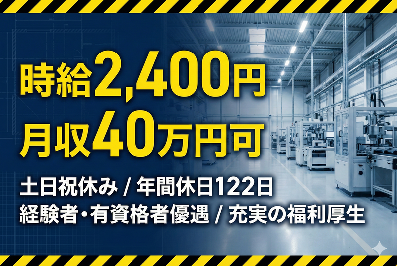 仕事内容 ▼▼▼▼▼▼▼▼▼▼▼▼▼▼▼ 工場見学も随時実施中! 大手企業内での設備管理業務 ▲▲▲▲▲▲▲▲▲▲▲▲▲▲▲ ✅工場内の電気設備・機械設備の確認作業 ✅工事に関する計画書の作成業務 ✅業者との日程調整・手配業務 ✅現場の安全確認および管理業務 \\ オススメPOINT // ■高時給2400円!月収40万円以上も可能 ■土日祝休み&年間休日122日で私生活充実 ■電気関連資格や設備管理の経験が活かせる ■車・バイク通勤OK&無料駐車場完備 ■温泉・シャワールームなど福利厚生も充実 <クルースのことをご紹介!> 大阪・東京エリア中心に 派遣・人材紹介をしています。 日払・週払い24時間いつでも申請ok 稼働分を簡単スマホ申請で最短即時振込(規定) <友人紹介キャンペーン中> 1万円支給(規定有)