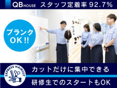 仕事内容 ヘアカット専門店のパイオニア「QB HOUSE」ならではのサポートあり! < お仕事復帰がしやすい >―――――――――― ★カット未経験者でも6ヶ月でスタイリストデビュー ★昨年入社の32%が異業種から現場復帰を実現◎ ★指名制度や売上ノルマなしでストレスなし! ★ノルマがなくても安定の月給制+昇給・手当あり ★毎日の休憩もしっかり90分取得できます◎ ★原則定時退社 ⇒ 勤務時間外の練習なし! ★土日祝休みも取得OKな希望休が月に3日あり! ★役職・皆勤・地域・ダブルライセンス手当あり ★マネジメント職や海外勤務などにチャレンジ可能 ★Uターンや一人暮らし希望の方にサポートあり! ──────────────────────── QB HOUSEが5か年で150店舗の拡大を計画!業績好調を背景に、スタイリストを大募集! < 仕事内容 >―――――――――――――――― ヘアカット専門店「QB HOUSE」での ヘアカット業務をお任せします。 カット専門店なのでシャンプーやカラー、パーマ、 シェービング等はなく、圧倒的な集客数を誇っているため スタッフ自ら集客や販促活動を行う必要もありません。 お客様一人ひとりに集中して接客できます。 ──────────────────────── 時間のクオリティに特化した 「お手軽で安心なヘアカットサービス」を 提供するカット専門店「QB HOUSE」を 日本中・世界中で展開しており 東証プライム市場に上場の当社。 国内スタイリスト数2000名以上という規模を誇りながら、 スタイリスト1人あたり平均30人/日の入客数を維持。 個人で集客をせずとも常に来店数が安定しています。 ──────────────────────── STAFFインタビュー 静岡店勤務・Akiyama/2017年入社 < 個人経営のサロンから転職 >―――――――― 早くカットを覚えたかったのですが、 4年間働いてもなかなか先が見えず…。 そんな時にQB HOUSEの研修プログラムを知りました。 ……………………………………………… QB HOUSE店舗のスタッフさんは同じように カットしているように見えても、 お客様一人ひとりに合わせてやり方を 少しずつ変えていて…。 「カットすげー!」って感動しました。 ……………………………………………… 入社するまでお客様をカットしたことがなかったので、 「こんなに喜んでもらえるんだ」 とカットの楽しさを感じられるようになったのが、 一番嬉しいですね。 ────────────────────────