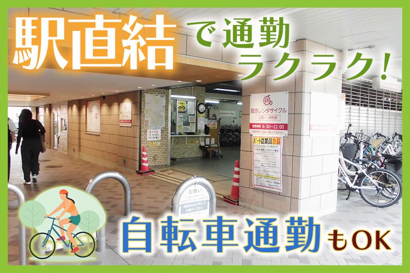 勤務地: 阪急園田駅直結のレンタサイクル店(阪急電車高架下) 兵庫県尼崎市東園田町 雨に濡れず通勤できます◎