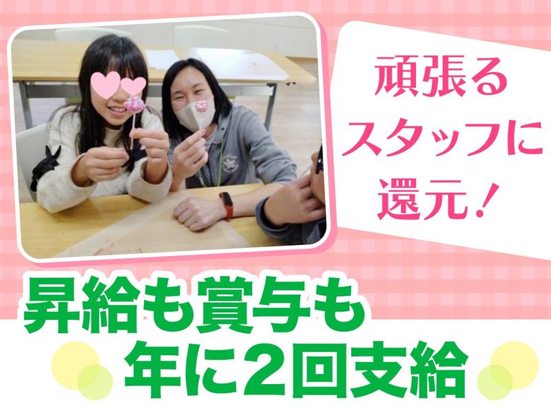 職場環境 ・小学生中心の教室 ・1日10~15名の子どもを 5~7名のスタッフで対応 ・学生~主婦・社会人まで幅広く活躍中 ・服装自由/職場見学OK <スタッフ情報> *平均年齢は35歳 *男女比/3:7 喫煙所:なし(敷地内全て禁煙)