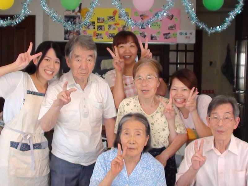 職場環境 ご利用者様とスタッフで 笑顔のキャッチボール♪ モットーは【みんなで過ごす大きな家族】。 楽しんでもらえる施設を目指しています◎ 元気いっぱいのご利用者様と 【だんらん空間】を創りましょう。