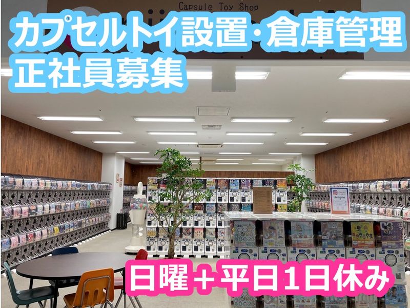 【週休2日/日曜+平日1日/連休OK】カプセルトイ(ガチャガチャ)設置や倉庫整理が主な業務です。自分が手がけた機械が店頭を飾るという達成感のある仕事です。