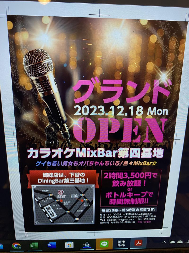 仕事内容 カラオケMixバーでのホール&カウンター業務 鶯谷駅北口徒歩2分!若い男女とLGBTQな人が入り混じる楽しいMixBar! 入谷駅徒歩2分の「DiningBar第三基地」の姉妹店として、2023年12月にopenしました! 仕事内容は、店内のお掃除やお客様へのドリンク提供、カラオケ機器の操作等になります。 店は楽しく、気持ちよく働けるようスタッフみんなで作っていく!というイメージです。 掃除から始まり、お客様がいらしたらお酒を作ってご提供。 楽しい会話とカラオケで盛り上げてくださいね! 慣れないうちはスタッフや常連客がフォローしてくれるから安心して働けますよ。 どちらの店舗もスタッフ同士仲が良く、常連客や卒業スタッフとも一緒に遊びに行き来しています。 両方働いてみてどちらの店で働くかを決めることも可能です。 因みに両方入っているというツワモノも5人在中! 自由度が高くやりがいあり! おまけに楽しく働いて、普段の生活では出会えない人脈作りも出来ちゃいますよ。 一生付き合うような友人に出会えるかも。 必ず入って良かったと言わせてみせます! まかない・お菓子・ドリンクあり 2店舗店割有・カラオケ歌い放題♪