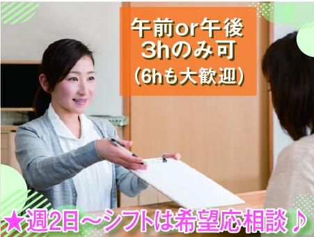 求めている人材 クリニック受付や事務など 未経験の方も大大歓迎♪ 親切丁寧指導で安心スタート♪ (簡単な入力等できる方) ◆クリニック等の経験者尚歓迎! ◆各種事務経験ある方も歓迎♪ ♥家事と両立して働きたい! ♥午前or午後のみ働きたい! ♥フル/実6hで収入重視♪ ☆週2日~時間・曜日応相談♪ (シフトは柔軟に対応可♪) ♥20代・30代・40代・50代~65歳/女性活躍中! 主婦さん!ママさんイキイキ大活躍中♪ <こんな方々にもオススメ> ・家庭や育児と両立して働きたい ・スキマ時間を有効活用したい ・扶養控除内で働きたい方♪ ・午前or午後のみで働きたい♪ ・週2日~3日位で探している ・受付や事務ワークが好き ・人に喜ばれる仕事がしたい ・近隣や周辺にお住まいの方 ・アットホームな職場で働きたい