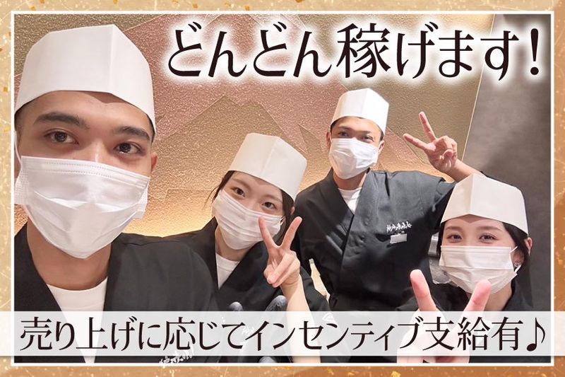 【保険制度】 雇用保険、労災保険、健康保険、厚生年金 待遇・福利厚生 【福利厚生】 ・交通費全額支給 *業績によりインセンティブ支給 *制度ルール化を進めています。 ・社会保険完備 ・賄いあり ・有給休暇(半年後:10日付与) ・制服貸与 ・髪色自由&ピアスOK ・昇給あり(年1回)