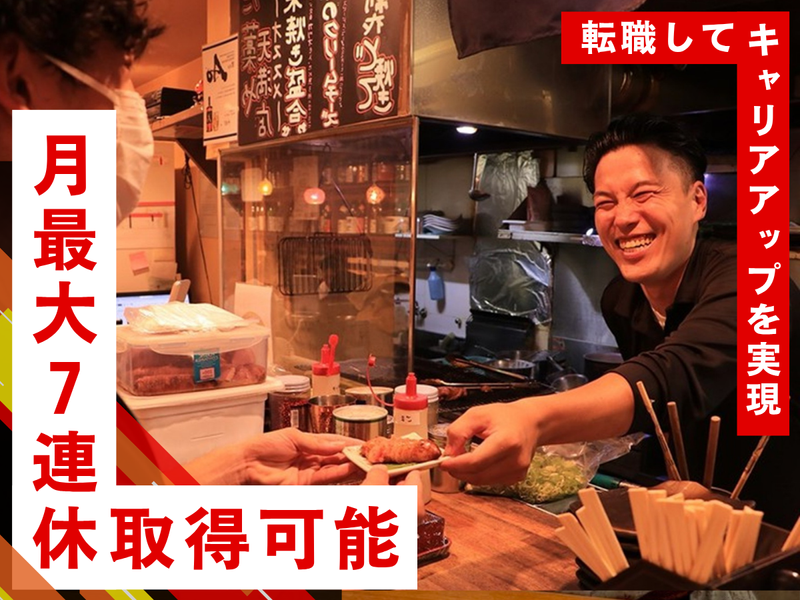 応募資格 ◎飲食店で正社員として勤務経験のある方(2年以上) ◎生きた経営を学びたい方 ◎勢いのある会社で勤めたい方 ◎料理長としての経験がある方優遇! ◎独立を志している方大歓迎! ジャンルの垣根を越え、沢山の方との出会いを大切に考えています。 経験に関係なく成果が給与に直結します! 幅広い世代の方、誰にでもチャンスがあります!