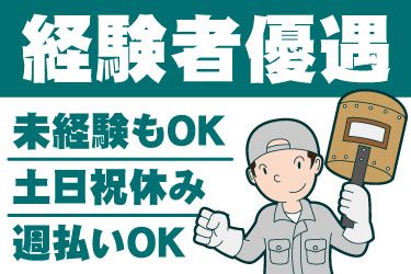 資格・経験 ・経験不問、未経験OK ・溶接作業経験あれば尚可 ・資格不問