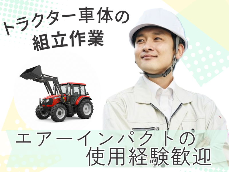 仕事内容 \トラクターの製造に関わるお仕事!/ トラクター車両の組立ラインでの 部品の組み付け作業! エアーインパクトなどの 工具使用経験がある方歓迎! 未経験の方もOKです◎ ================= ✅平日のみなのでメリハリをつけて働ける ✅残業月10~20時間あり(別途残業代支給あり) ✅10名大量募集!積極採用中! ================= ✅最短3日!入職まで迅速にサポートします! ご登録<約10分> ↓ 面談<約20分> ↓ 職場見学<約30分> ↓ 入職 「早く次の仕事を始めたい!」 「転職に時間をかけたくない!」 など、あなたの大切な時間を 全力でMAYAがサポートします!