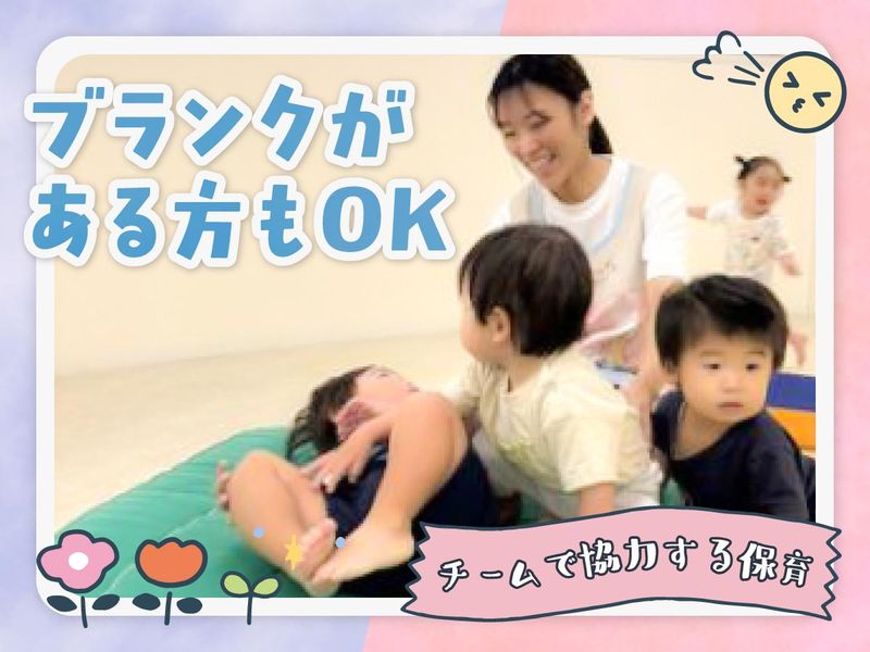 求めている人材 ◇保育士資格をお持ちの方(必須) ◇ブランクがあるけど、また保育に携わりたい方 ◇子どもとじっくり関わりたい方 ◇チームで協力しながら働くのが好きな方 ※現在20代・30代の女性スタッフが活躍中です!