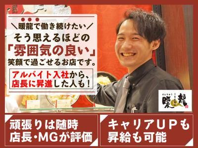 求めている人材 *接客業務の実務経験をお持ちの方 *20代の第二新卒や30~40代の経験者も活躍しています >カフェやファミレス、ラーメン店など別業態の経験者も歓迎 >スーパーやアパレルなど異業種での経験者も歓迎 *学歴不問!高卒・中卒も大歓迎! *フリーターも大歓迎! *女性店長・女性社員も活躍中!男女問わず大歓迎! *店長経験者も歓迎します 【意欲があれば大歓迎!】 今回は接客業の実務経験者募集ですが、 スキルよりも「チャレンジ精神旺盛な方」を軸に採用活動を行っています。 今後新しく店長・料理長のポジションをお任せするにあたり、 積極的にキャリアアップを目指したいとお考えの方にお店を託したいと考えています。 実際に暖龍では高校生の時にアルバイトで入社し、 その後23歳で店長を任された人もいます。 女性の店長もいますので年齢や性別、社歴を理由に、 キャリアアップが叶わないということはありません。 店長や料理長のポジションを任せるのに相応しい頑張りと実力があれば、 どなたでもキャリアアップを目指せます! 積極的に仕事に取り組んでくだされば、 部長やマネージャーが必ず適切に評価をしますので、 頑張りが無駄になることはありません!