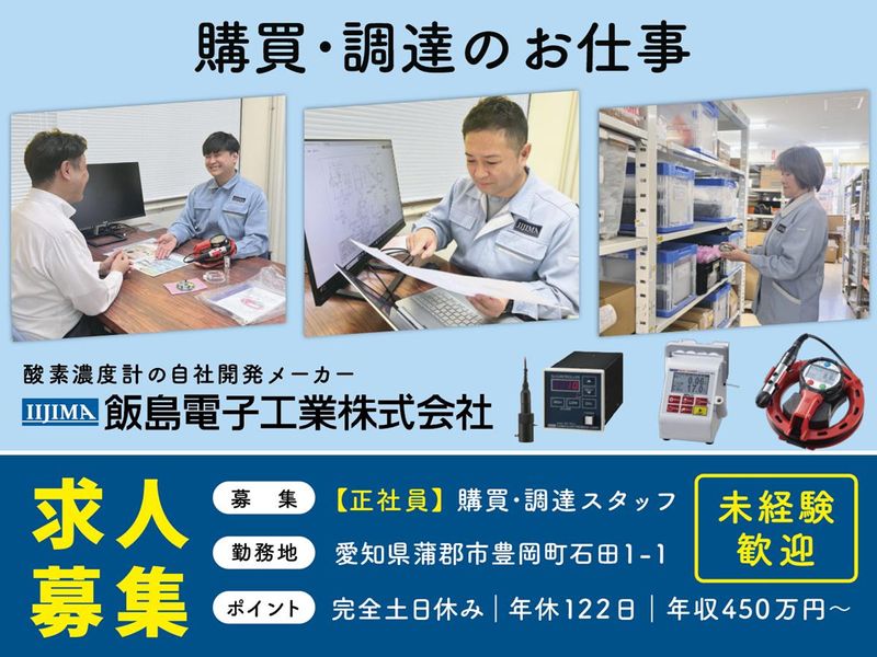 仕事内容 ◤ ◥ ✨調達のプロを目指しませんか✨ 自社製品メーカーの調達ポジション。 少数精鋭ならではのチームワークで、 キャリアアップを実現します! ◣ ◢ 当社は「酸素濃度計」を自社開発する 創業55年のメーカーです。 酸素濃度計の業界では日本トップシェア。 独自のセンサー技術や、ニッチトップ戦略で 毎年売上を伸ばしている高収益メーカーです。 そんな安定した業界で 仲間とともに切磋琢磨しながら、 将来「調達のプロ」を目指して キャリアを築きませんか? ⭐⭐仕事内容⭐⭐ ◆まずは基本業務をじっくり ・社内システムを使用した購買先への発注業務 ・部品検査や入庫、材集(ピッキング)の業務 ・購買先との価格や納期の交渉 ・新規部品の依頼における書類のやりとり ◆ルーチン業務に慣れたら年次業務へ ・年間発注計画の策定(部品在庫の削減) ・新規購買先の開拓(出張訪問もあります) ・購買先への技術指導 ・購買部門の業務における課題抽出と対策 ・部員の育成指導 ・ISO審査、内部監査等の対応 ◆イレギュラー対応にも柔軟に対応 ・部品不良発生の際の調査依頼や対策 ・入手難部品の代替案調査や処置の提案 ◆経営方針に関わる業務も主体的に推進 ・Win-Winの関係を築ける 新規協力会社の開拓 ・既存協力会社の育成 ・社内システムのメンテナンスや更新 ・社内の成果報告会での成果プレゼン など ⭐⭐入社後のイメージ⭐⭐ ◆1年目 一通りのルーチン実務の習得と、 先輩社員の経営方針業務のお手伝いを通して、 購買業務の全体像をつかみます。 先輩社員の指導のもと、 購買システム更新や年間計画の作成、 不具合調査などの手伝いを行います。 実務以外にも、会社行事や委員会活動などに 参加しながら、他部署とのスムーズな連携を 取れるようにしていきます。 ◆2~3年目◆ 自身の判断力を養い、少しずつ、 業務の担当を任されるようになります。 経験を身につけながら、自分で計画や判断を行い、 同時に、部員への実務指導を少しずつ担当します。 ISO9001の内部監査や審査に対しても、 先輩社員のサポートを行いながら理解を深めます。 ◆4~5年目◆ 先輩社員のサポートなしで 一人で購買部を任されるようになります。 経営方針を理解し、目標設定や手段を組み立て 部員とともにチームで達成できるようになります。 会議などにも参加し、購買部として、また 会社全体を俯瞰して判断ができるようになります。 また、内部監査員の資格認定を取得し、 品質に関する知識と経験を厚くしていきながら、 組織としての改善サイクルを回せるようになります。 ⭐⭐安定の事業領域⭐⭐ 当社は「酸素濃度計」という精密機器の 開発・製造・販売を一気通貫で手掛け、 おかげさまで毎年業績を伸ばしています。 当社独自の技術を用いていることから、 食品・飲料・製薬メーカーなど 日本全国の企業様より長い年月、 ご指名をいただいております。 30年間連続黒字。無借金経営。 堅実な経営をしています。 会社の規模は大きくありませんが、社内は 「いつ来ても蒲郡で一番元気がいいね」と ご来社される方に言っていただけるほど 元気な挨拶や活気が定着している会社です。 安定して長く働いていける当社で 一緒に活躍してみませんか? 専門的なスキルや、幅広い業務を習得でき、 将来のキャリアや自信につながっていきます。 ご応募をお待ちしております!
