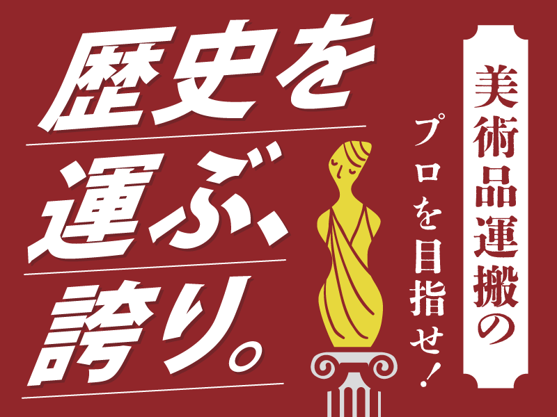 求めている人材 ■業務未経験者、長期勤務大歓迎!■ ■美術品を丁寧に扱える方ならOK!■ 美術関連のお仕事経験者は特に おすすめですが、未経験の方も安心。 最初は何もできなくても少しずつ慣れ、 現在も活躍中のスタッフ多数です◎ ✨WワークOK! ✨大学生・フリーター歓迎! 10名以上の募集! 名画等の作品や、美術品の運搬や展示、 展示後の撤去等をお任せします! 職場はなんと美術館やアトリエの 関係者以外、立ち入り禁止区域に 入っていただきます! 美術品を扱うために慎重さが重要です! 丁寧な仕事ができる方を大歓迎! ―――――――――――――――――― \\ こんな方歓迎 // ・美術館が好き!芸術に興味がある ・美術関連の仕事経験がある ・ものづくりや繊細な作業が好き ・体力や力を使う仕事に自信があり コミュニケーション能力がある ・やりがいのある仕事で 趣味や夢の実現 ・安定勤務希望 ・いろいろな場所に行ってみたい ・普通自動車免許お持ちの方歓迎 (なくてもOK) 秘密基地に入った気分で 楽しく働けますよ! 美術館や芸術、ギャラリー等に 興味がある方はもちろん、 もともとは興味がなかったけど 刺激をもらったという先輩も多数です! 「自分の創作活動と両立して、 夢を追いながら収入を得たい」 「作品作りに必要な費用に充てる資金を 得るために空いてる日で働きたい」 「働きながら作家活動に繋がる インスピレーションを得られる ような仕事を探している」 …などの理由で応募した先輩も多数◎ まずはお気軽にご応募くださいね✨