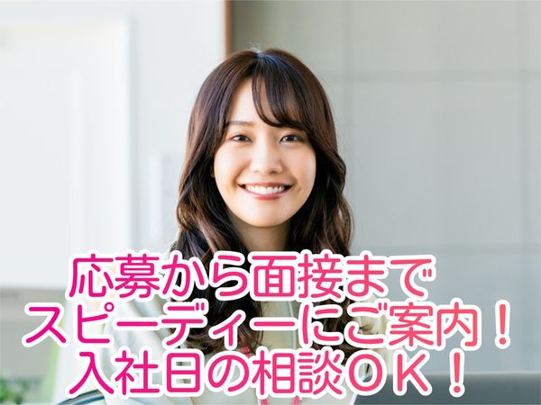 選考フロー *出張面接実施します *履歴書は不要です◎ \面接は普段着でお越しください/ *超スピード選考→応募から勤務開始まで”最短2日”! *勤務スタート日等、相談に応じます! *スグ働くことも可能!即日勤務大歓迎◎ *面接となると緊張されるかと思いますが、ざっくばらんにお話できればと思います。 *何でも質問・相談してくださいね。 <<あなたの「やってみたい」という気持ちを全力でサポートします!>> 新しい方が入ってくれること、スタッフみんなが楽しみにしています。