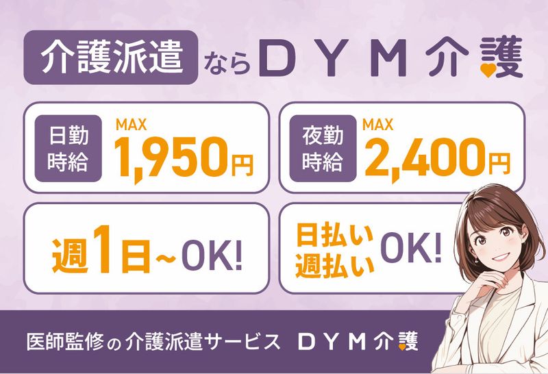 【アピールポイント】 \DYM介護で働くスタッフの声ランキング/ ✅とにかく早く職場が見つかって働けた! ✅前職よりも給与がUPした! ✅休み・時間帯の合うお仕事がたくさんあった! 他にもお給料の日払い・週払いやマイカー通勤、 直接雇用への切り替えもしっかりサポート! 素早い対応&厚待遇でお仕事探しをサポートします! 【勤務時間帯のご相談にも応じます!】 ⭐️日勤・夜勤の専属 ⭐️時短・短時間勤務 ⭐️お子さまのお迎えや家族の帰宅の時間に合わせて退勤 などなど、ライフスタイルに合わせて働きやすい時間帯をご相談下さい♪