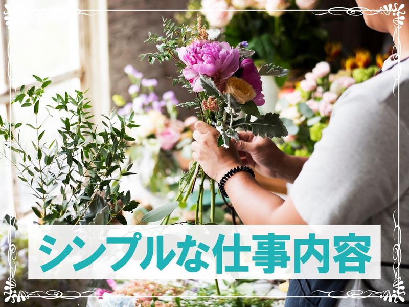 仕事内容 \\ 接客なし◎モクモク作業 // 仕事に慣れるまでは先輩と一緒に行動◎ 関西圏を中心に展開する生花販売会社で、 長期で安定して働けるお仕事です! ―・*・―・*・―・*・―・*・―・*・―・*・― 【生花コーナーの売り場づくり全般】 担当するエリア内の取引先スーパーにうかがい 生花コーナーの整理・商品の補充・レイアウトの変更などの売り場づくりをお願いします。 接客をしながらの販売はないですが、スーパーに買い物にいらっしゃったお客様が 足を止めて商品を選んでもらえるような売り場を目指して下さい。 ※基本的には、整理・補充する商品の積み込みは朝の1回になります。 事務所に戻り、商品を再度積み込み店舗に運ぶことはほぼありません。 ※使用するトラックは2t車になります。(カーナビ完備) もちろん店舗での販売職などの経験がある方は 経験を活かせますが未経験でもご安心下さい。 仕事に慣れるまでは先輩と一緒に行動していただきますので、実際の売り場をたくさん 見ていくことができます。 ―・*・―・*・―・*・―・*・―・*・―・*・― 【1日の流れ】 ・門真の事務所に出勤し当日のルートを確認 ↓ ・売り場に並べるお花をリストに従ってトラックへ積み込み出発 ↓ ・1日12件程度の店舗に向かい、無人の花売り場に商品を陳列 ※当日に向かう店舗リストの通りに向かいます ※少しでもキレイに見えるように陳列をお願いします ↓ ・当日に向かう店舗が終了したら門真の事務所に戻り終了 ―・*・―・*・―・*・―・*・―・*・―・*・― 【固定ルート!積み込みは朝の1回のみ♪】 1日の件数は日によって変わりますが、 向かう店舗へのルートは固定だから 一度行き方を覚えたらラクラク♪ カーナビも完備で安心! 途中で行き先が増えることはないため、 朝の時点で予定が立てやすいのがポイント◎ まわり終わったら事務所に戻って終了! 突発対応や再出発はありません! ―・*・―・*・―・*・―・*・―・*・―・*・― 【接客&販売業務なし!】 無人の花売り場での陳列作業が中心◎ 慣れたら一人でルート巡回していただくので 一人でモクモクと作業したい方にピッタリ♪ ◆整理・補充・レイアウトの変更 ◆陳列や清掃 ◆お花の管理や拭き掃除 などのルーティン作業となります◎ 人とのやり取りが最小限で、 自分のペースで進められるお仕事です! ―・*・―・*・―・*・―・*・―・*・―・*・― 【入社後の研修に関して】 入社後は、まず仕事のやり方や 当社の無人店舗(売り場)を 覚えていただくため先輩と一緒に行動します。 商品の積み込みを行い助手席に乗って出発。 店舗に到着次第、商品を降ろして 花売り場での陳列や清掃を行います。 まずは先輩のサポート的なお仕事になります。 業務はルーティン化されていて覚えやすく、 慣れた後も朝に1日の流れや 忙しさの予想を立てやすいのがポイント♪ 仕事内容に慣れていただけば、 一人でルートを回っていただきます。 ―・*・―・*・―・*・―・*・―・*・―・*・― 【人を喜ばせたい方などは大歓迎します】 お花の飾り方や陳列・配置など、あなたの発想 を活かしてレイアウト作りを楽しんでください! またお水の管理や拭き掃除なども行いお花だけ でなく陳列している売り場全体を綺麗にし、 お客様に気持ちよく手に取ってもらえるようにして下さい。 お花好きの方にはたまらないお仕事ですよ! ―・*・―・*・―・*・―・*・―・*・―・*・― 【 ”お花の総合企業” 】 関西を中心に生花店を展開。 スーパーや商業施設に向けて切り花商品の 製造・販売をおこない、店舗に配送したり、 生花コーナーのメンテナンスといった 「生花商品・生花コーナーのアウトソーシング」を行っております。 ”お花の総合企業”として、 廃棄ロスや人件費の削減などにも貢献しています。