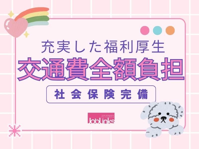 求めている人材 年齢や性別、これまでの経験を問わず、 幅広い方々が無理なく新しいスタートを 切れる環境です。 コスメや化粧品に興味がある方はもちろん、 久しぶりにお仕事に復帰したい方や、 軽作業が初めての方にもぴったりです。 仕事内容は難しくなく、 重たいものを運ぶ作業はほとんどありませんので、 体力に自信がない方でも安心して働けます。 神戸市、神戸市東灘区、大阪市、 神戸市中央区、神戸市灘区からの通勤に便利な 勤務地です。 無料駐車場や送迎バスの利用ができ、 車・バイク・自転車通勤にも対応。 交通費は原則全額支給で、 毎日の通勤負担を気にせず働けるのも 魅力です。 自分の都合に合わせて曜日や時間帯を 選ぶことができるため、 学業や家事、他のお仕事と両立しやすい 環境です。 一人ひとりの生活リズムを大切にしながら 無理なく働くことができます。 実際に、学生や主婦(夫)、フリーターなど 多彩なライフスタイルの仲間が在籍しており、 年齢層も幅広い職場です。 お仕事にブランクがある方も、 充実の研修と丁寧なサポート体制で安心です。 分からないことがあれば、 先輩スタッフがしっかりフォローします。 ファッションや髪型・髪色など、 自分らしさを大切にできる職場です。 普段使っているコスメや話題の新商品に 実際に触れながら、 流行を身近に楽しく感じていただけます。 自分のペースで無理なく新しいスタイルの 働き方を実現したい方に最適です。 応募はスマートフォンから簡単にでき、 WEB面接や履歴書不要でスタートもスムーズです。 まずは一度、あなたのことや働き方の希望を お聞かせください。
