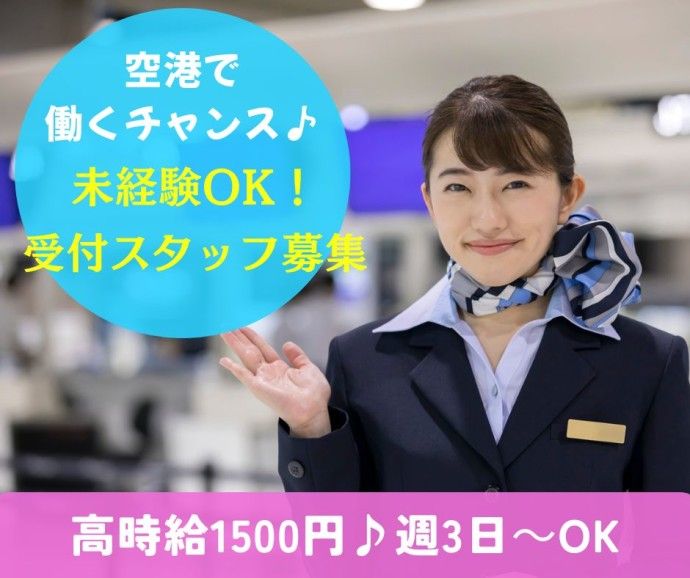 \経験不問◎羽田空港で働けるチャンス/カウンターでの受付スタッフ募集@大田区羽田空港★マイカー・バイク通勤OK!<高時給1500円&日払いOK♪>週3日~OK!/履歴書&来社不要のかんたんWEB登録!(JS)/№911