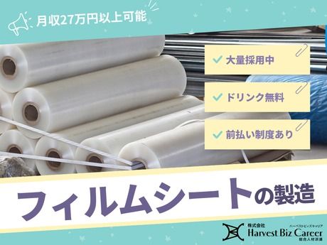 仕事内容 フィルムシートの製造作業 日用品や印刷用フィルムなどの建設材料、 絶縁テープなどの電気・電子・自動車部品材料、 遮水シートなどの環境保全資材まで、 広範な分野にシート・フィルムを提供している会社です♪ ・原料配合業務 製品の基になる原料を適切な割合で配合します。 ・混練工程 配合された原料を混ぜ合わせ、均一な素材を作り上げます。 ・巻取工程 出来上がった素材をシート状にし、巻き取ります。 ・出荷前作業 製品を出荷する準備を行います。これには検品や包装作業などが含まれます。 上記の業務は3~4名のチームで協力して行います♪ 主に機械操作の業務となりますので、 先輩社員からの指導を受けながら徐々にスキルアップしていただきます!