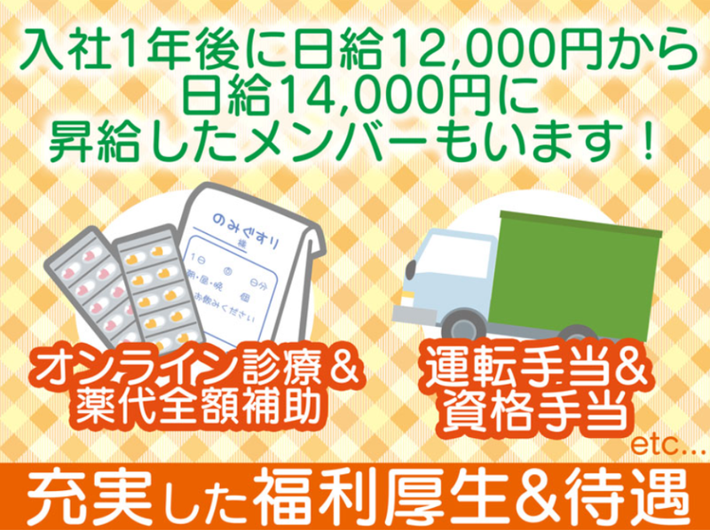 単身寮あり♪オンライン診療薬代全額補助!正社員登用住宅手当付