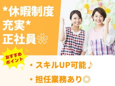 資格 ■必須 ・幼稚園教諭免許(専修・1種・2種) ・実務経験、担任経験 ・ワード・エクセル基本操作 ■保育士免許、普通自動車運転免許を お持ちの方は採用面で優遇いたします。 ■20~50代のスタッフ活躍中!