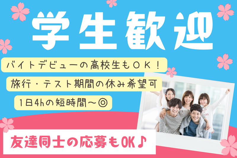 求めている人材 *学歴不問! *未経験者大歓迎! *学生・主婦・フリーター活躍中! こういう人に向いてます ・接客が好き、でもガッツリは無理 ・子育て・学校・推し活と両立したい ・“無理なく続けられるバイト”がいい ・チェーンだけど雰囲気の良いお店がいい ・近所で働きたい