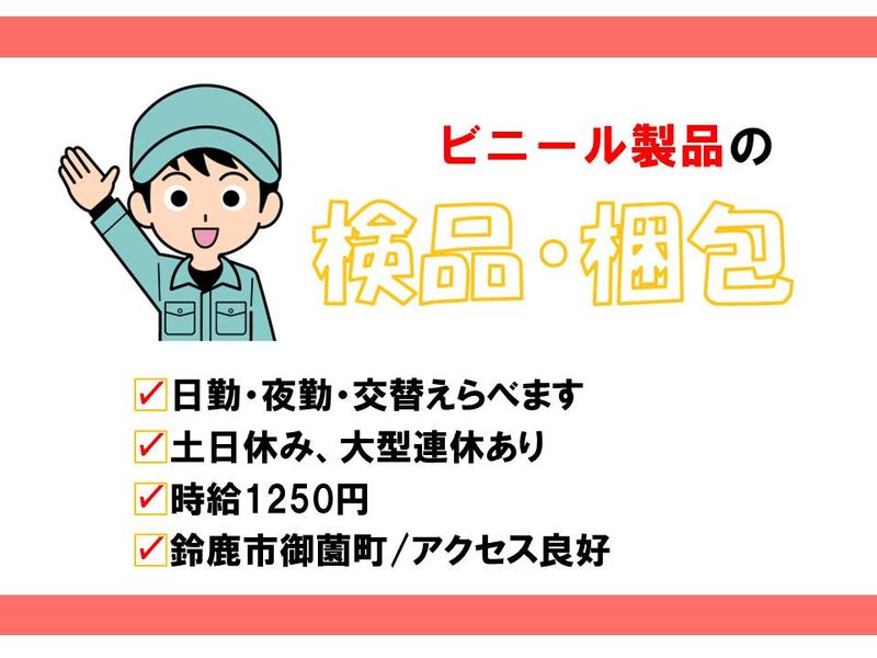 「日勤」「夜勤」「交替」選べます◎ビニール製品の梱包・検品