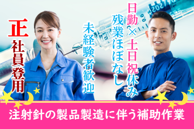 仕事内容 【日勤・長期安定】那須塩原市中心部の人気エリア!≪医療・美容用注射針の製造補助≫20~40代の男性、女性も活躍中です!正社員登用制度あり◎ <仕事内容> 医療、美容整形等で使用する注射針を作る工場で勤務していただきます。 主な作業は、製品投入、研磨、検査、バリ取りなど、 製品製造に伴います補助作業を行っていただきます。 ライン作業等が苦手で、アクティブにお仕事を進めたい方にオススメの職場です。 立ち作業でのお仕事です。 重量物を扱う(15㎏以上)可能性がございます。 個人作業・グループ作業どちらもございます。 《環境》 女性が多い職場です。 CDP派遣スタッフが在籍中です。 冷暖房完備です。 アピールポイント <仕事内容> 医療、美容整形等で使用する注射針を作る工場で勤務していただきます。 主な作業は、製品投入、研磨、検査、バリ取りなど、 製品製造に伴います補助作業を行っていただきます。 ライン作業等が苦手で、アクティブにお仕事を進めたい方にオススメの職場です。 立ち作業でのお仕事です。 重量物を扱う(15㎏以上)可能性がございます。 個人作業・グループ作業どちらもございます。 《環境》 女性が多い職場です。 CDP派遣スタッフが在籍中です。 冷暖房完備です。 \充実した福利厚生/ ◎社会保険・雇用保険完備 ◎有給休暇有・残業手当 ◎交通費支給(規定内) ◎確定拠出年金制度 ◎週払い制度(週3回対応) ◎お友達推薦制度あり(規定有り)※1名につき3万円~10万円臨時給与として支給 ◎職場見学あり ◎車(マイカー)・バイク通勤可(無料駐車場あり) ◎正社員登用制度あり ◎冷暖房完備 ◎福利厚生プログラム (宿泊、グルメ、ショッピングなど大幅割引が受けられる10万アイテムのメニューがあります。)