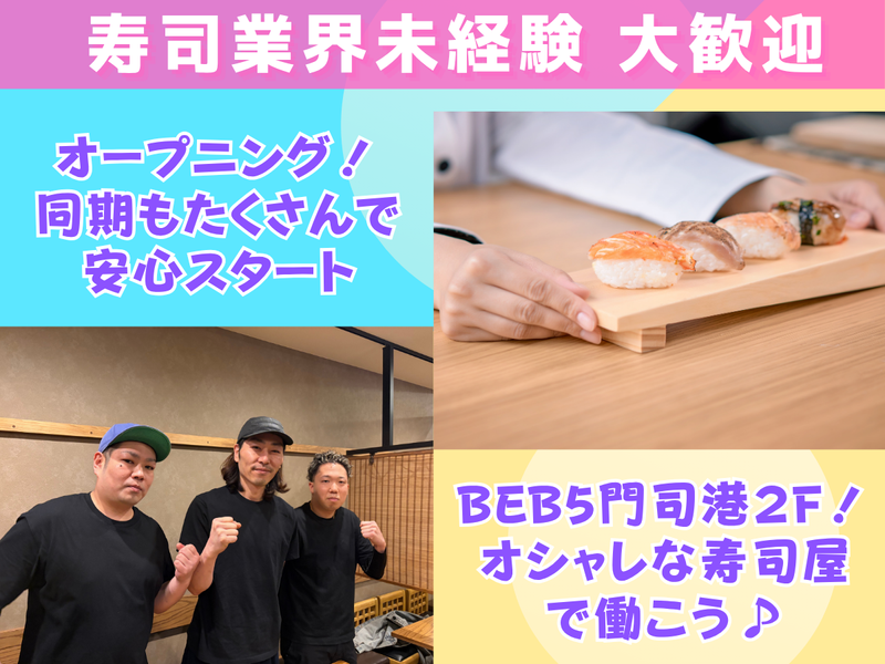 求めている人材 ✅「寿司」が大好きな人 ✅「寿司」を1から学びたい人 ✅未経験OK(飲食経験・魚の知識は不要) ✅素直に聞ける/チームで動くのが好きな方 ✅オープニングで新しいお店づくりに関わってみたい方 ※飲食店での勤務経験がある方は尚歓迎(ジャンル不問/アルバイト経験でもOK) ※寿司の経験がなくても大丈夫です ⭐髪型・髪色自由/ひげOK ✅自分らしさを否定しない職場です。✅