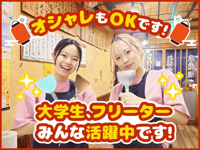 仕事内容 ・‥…━━━⭐・‥…━━━⭐ \ 超和やか! / 働きやすさに自信アリd('v'*) 大学生さんがワイワイ活躍中! - 【未経験歓迎】✅初バイトにも♪ 【自由シフト】✅週2日~、3h~OK 【髪色も自由】✅ネイル・ピアスも可 【まかない有】✅なんと“2食”までOK ・‥…━━━⭐・‥…━━━⭐ 【個人経営のもんじゃ屋さん♪】 お客さんの前でもんじゃを焼くのがウリ 実は…有名人も多数来店する人気のお店! ✅接客対応 ✅料理提供 ✅簡単な調理などをお任せ ⋱⋰⋱⋰⋱⋰⋱⋰⋱⋰⋱⋰⋱⋰⋱ \ スタッフ特典 / 絶品まかないが2食つき! ココだけの話… 食費、浮いちゃいます✨ ⋱⋰⋱⋰⋱⋰⋱⋰⋱⋰⋱⋰⋱⋰⋱ ⭐未経験歓迎!⭐ アルバイトデビューの方、大切に育てます! 「いらっしゃいませ」の 挨拶から丁寧に教えていきますよー! ノリのいい仲間が集まっているので 新人さんもスグ馴染めますよ♪ ⭐青春時代を過ごしたスタッフも ⭐ 大学1年生から始めて4年生まで…と 長く続ける方が沢山いらっしゃいます! *・。*・。*・。*・。*・。*・。*・。 (η・o・)n<活躍中の先輩の「声」 *・。*・。*・。*・。*・。*・。*・。 履修が決まっていない期間や ちょっとやばそうなテスト期間は シフト調整の相談にのってもらえるので、 とても助かっています! 時給も高めなので、 ラストまで勤務を長期的に頑張りました! そのお金で、念願の原付を購入!! 通勤もプライベートも楽しんでいます♪