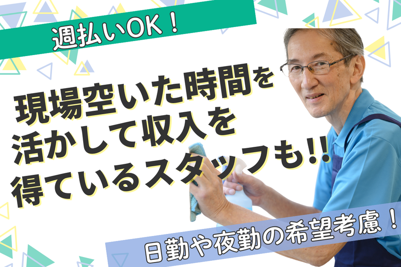 仕事内容 ✅実働3~7時間(現場による)! ✅早く終わっても日給保障で安心! ✨未経験の方も大歓迎 ✨ライフスタイルに合わせて 働き方が選べます! ✨30~50代多数活躍中! ✨家事の経験が活かせます♪ ✨職場の雰囲気が良く、 長く働ける環境です! ━━━━━━━━━━━━━★☆…・☆ ■【仕事内容】■ オフィスビルや商業施設 での清掃のお仕事です。 経験豊富な先輩スタッフが 丁寧にサポートするので、 初めての方も安心してスタートできます! 今当社で働いているスタッフは 未経験で入社した方がほとんどです! 「経験がないから不安…」 その気持ちも十分に分かります! そんな気持ちがあっても、大丈夫です! 仕事内容など面接で丁寧 にご説明しますので 安心してご応募して下さい! 長く腰を据えて働きたいと 考えている方にはピッタリです♪ ━━━━━━━━━━━━━★☆…・☆ 【勤務地】 東京都・埼玉県・千葉県に現場多数 面接地:さいたま市見沼区東門前330-5 (七里駅から徒歩10分) ━━━━━━━━━━━━━★☆…・☆ \⭐【こんな方にピッタリ】⭐/ ✅セカンドキャリアをお考えのシニアの方 ✅ブランクがあっても再就職したい方 ✅体を動かす仕事がお好きな方 ✅清潔な環境づくりに興味がある方