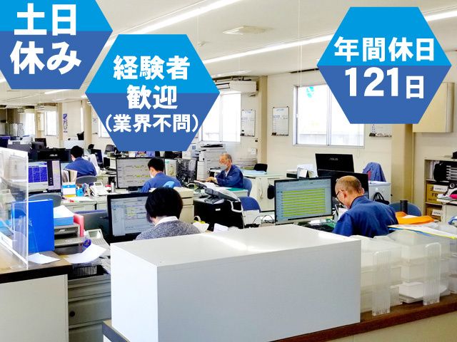 年間休日121日/日勤/土日休み/福利厚生充実/ 経験者歓迎(業界不問)/1分単位で残業代支給