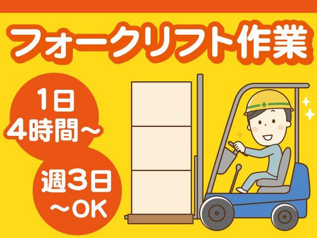 倉庫内フォークリフト作業員募集! 1日4時間~、週3日~OK! 未経験・ブランクがあってもOK!