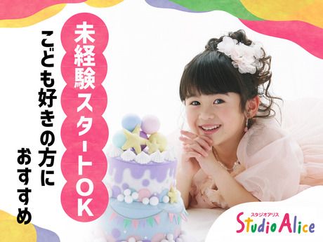 仕事内容 受付・撮影アシスタントスタッフ★お子様の「特別な思い出」を演出! スタジオアリスでの撮影アシスタントを募集します! お子様の衣装選びのお手伝い、お着がえのお手伝い、撮影時のアシスタント、写真選び、撮影業務などをお願いします。お子様と触れあう機会がとても多い仕事です。子どもが好きな方、自分の提供するサービスでお客様に喜んでいただくことにやりがいを感じる方にお願いします! 写真だけじゃなく、スタッフの笑顔も思い出のひとつ☆彡 単に撮影してお渡しするだけの仕事ではありません。 節目節目で撮影される写真はまさに「成長の記録」であり、何年、何十年も経ってから価値が出てくるものです。 もちろん写真だけでなく、撮影時の楽しかった雰囲気やスタッフの笑顔も、一緒に思い出に刻まれます。 だからこそ1人ひとりのお子様に笑顔で、丁寧に接してくださいね! 「小さい頃、スタジオアリスで撮影してもらったんですよ!」 スタジオアリスで七五三の撮影を行った方が成人式の撮影で十何年かぶりにご来店くださる。そんなこともよくあります。 「あの時のスタッフのお姉さんの笑顔が素敵で、またここで撮影したいと思って来ました!」と言ってくださる方も。 私たちにとっても嬉しい瞬間ですし、お客様の人生の大切な瞬間に立ち会えるのは誇らしいです。 この仕事に向いている人は…? スタッフは女性が9割!子どもが好きな方、笑顔で受け答えができる方。そんな方なら大丈夫! そして「ご家族の思いに寄り添えるか?」も大切です。 どういう思いで撮影に臨まれるのか?ご要望を叶えるために丁寧にお伺いし、1組1組のお客様に全力で向き合える方。 自分のことより先にお客様のためを思って行動できる方なら活躍できます。 みんなで支え合う職場。フランクで話しやすい雰囲気です。 衣装選びのメニューや写真選びの方法、七五三などの行事の知識…。 「大変そう」というイメージがあるかもしれませんが、簡単な業務からお任せするので安心してくださいね。 最初は大変だと思うかもしれませんが、そんな時は周りの先輩や仲間に遠慮なく聞いてください。 みんなで支え合う職場。店長もフランクな方ばかりです。