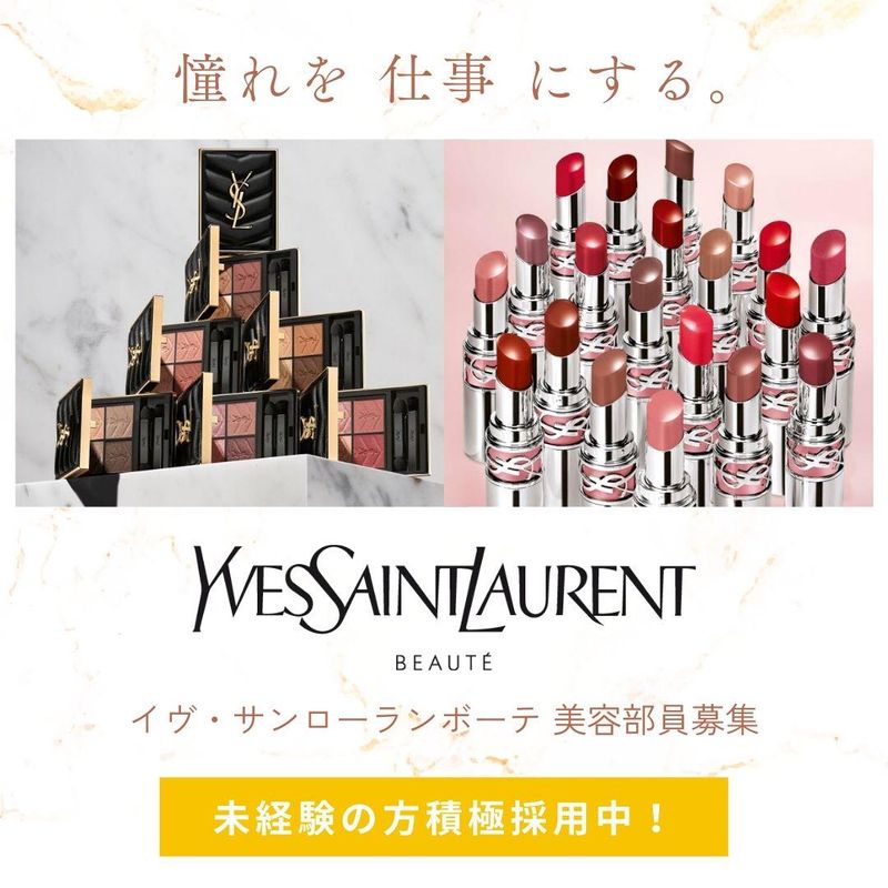 仕事内容 ⭐具体的なお仕事内容⭐ ✨レア求人!YSLでのお仕事です✨ ✨毎月最大8万円のインセンティブあり✨ ┗頑張った分はしっかり還元♪ ✨社員転籍実績も多数です✨ ビューティーアドバイザーとして、 百貨店や商業施設内にある 化粧品売り場にて下記をお任せします。 *ー* ・お客様へのカウンセリング ・化粧品販売・商品提案 ・その他レジ業務 ・商品の在庫管理・入荷検査・陳列など 頑張った月はインセンティブあり♪ 憧れの有名化粧品ブランドで美容部員♪ *ー* ✨Yves Saint Laurent Beauté *イヴ・サンローランボーテについて✨ イヴ・サンローランにとって「美」とは、 タブーを打ち破り、自分を自由に表現するもの まとったり、組み合わせたり、 日々の変化や重ねたりしながら 女性は新しい自分へと 生まれ変わることができるのです。 ファッションをタブーや ありきたりの方法から解き放ち、 純粋な追求と変化をもたらした ムッシュ イヴ・サンローランは、一瞬一瞬の 自分の人生を切り拓く 女性のための新境地を開拓! *ー* ⭐その他のブランドも多数案件あり⭐ 詳しくは公式HPでもチェックできます! https://makescareer.gaiasign.co.jp/