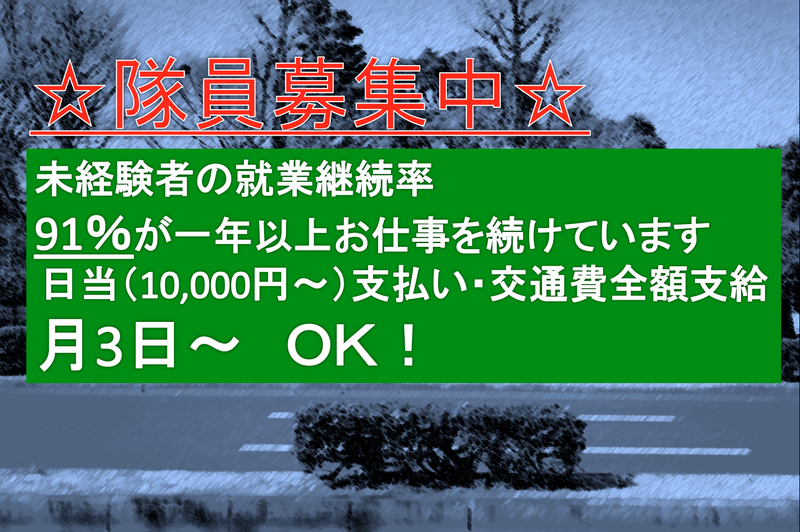 求めている人材 ✅学歴不問 ✅未経験者歓迎/未経験・初心者OK ✅副業・WワークOK ✅ブランクOK ✅経験者歓迎/経験者・有資格者歓迎 ✅既卒歓迎/第二新卒歓迎 ✅フリーター歓迎 ✅扶養内勤務OK ✅中高年活躍中 ✅ミドル活躍中 ✅シニア活躍中 ✅50代を中心に20代,30代,40代,50代,60代,70代,80代活躍中 ✋「Wワークで収入の上乗せ」 ✋「家事・育児と両立しながら」 ✋「子育てが落ち着いたから」 ✋「夢を追いながら生活費の確保」 ✋「定年を過ぎたが、健康の為」 など様々なスタッフが在籍しています! "健康の秘訣は、社会との繋がりをなくさない事" ༶ ༶ ༶ ༶ ༶ ༶ ༶ ༶ ༶ ༶ ༶ ༶ ༶ ༶ ༶ ༶ ༶ ༶ ⏩未経験の2年以上の就業継続率が91%超え ⏩今回募集するお仕事では、 施設警備、常駐警備、イベント警備、 交通誘導、立哨、巡回、監視、 安全管理、夜間警備、工事現場警備 などの経験が活かせます! ⏩異業種からの転職者も多数活躍中! 知識や経験は必要ないので ぜひお気軽にご応募ください♫ ⏩正社員・アルバイト・パート・派遣社員 として働いていた先輩たちが活躍中! 年齢の条件と理由:あり(例外事由2号・18歳以上(労働基準法))